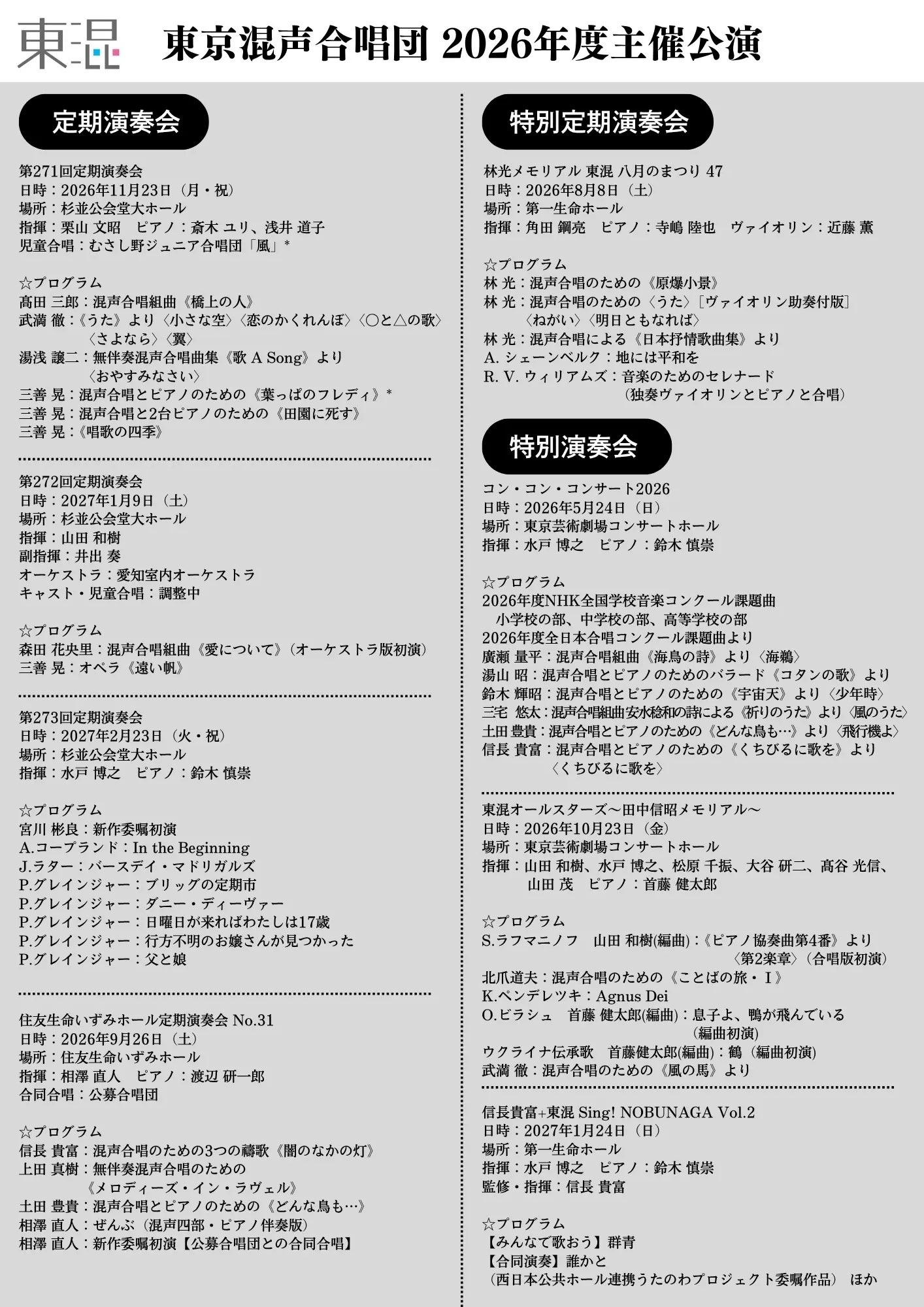 土曜 / 東京混声合唱団 第272回定期演奏会 / 指揮:山田 和樹 / 委嘱初演